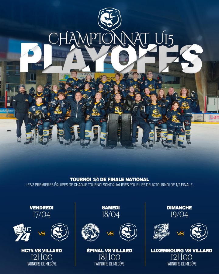 ◊ Les U15 démarrent quant à eux les 1/4 de finale à Megève et seront confrontés à Épinal, le Luxembourg et le HC74 ![]()